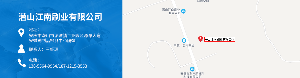 地址:安徽省安慶市潛山市源潭鎮(zhèn)工業(yè)園區(qū)源潭大道安徽刷制品檢測中心隔壁 營業(yè)執(zhí)照